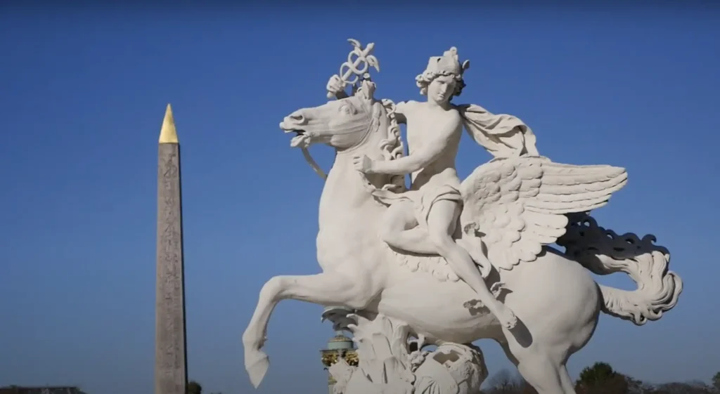 En 1836, l’obélisque de Louxor, offert par l’Égypte, s’élève au centre de la place. Ce cadeau de Méhémet Ali célèbre le déchiffrement des hiéroglyphes par Champollion. Transporté via un navire spécialement construit, son installation marque un tournant symbolique, remplaçant la guillotine par un monument de paix et de savoir.